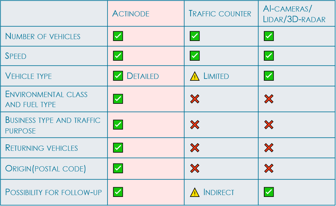 Yes. In Kista, Stockholm, Actinode was compared with traditional pneumatic tubes. The results were clear: higher accuracy, richer data, and more actionable insights—regardless of weather or time of day.